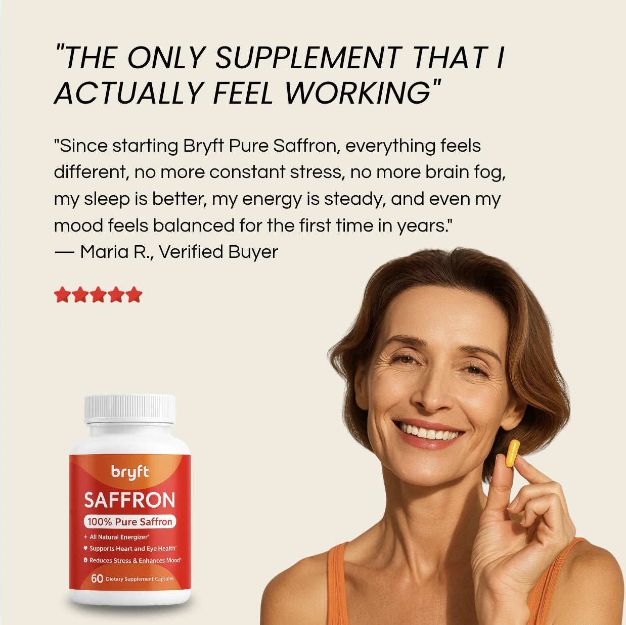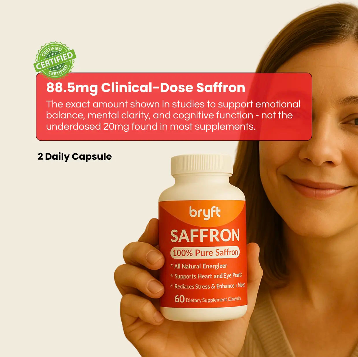 Try Bryft Pure Saffron for 30 days—if you don’t feel more balanced, focused, and emotionally clear, we’ll refund you. No questions asked.